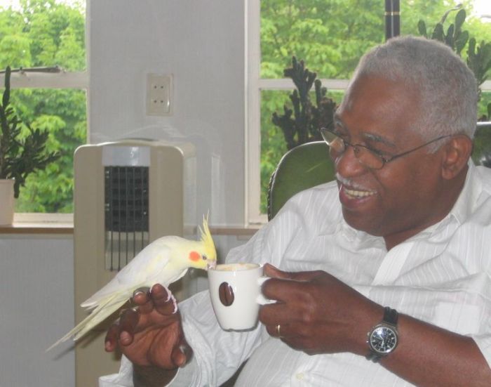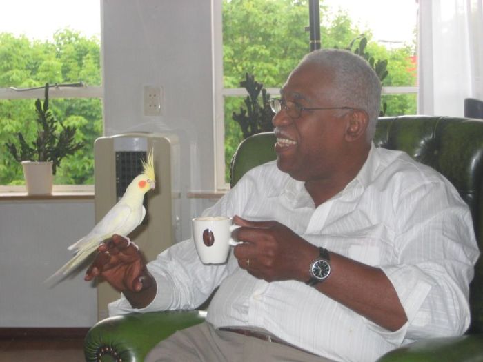 De valkjes mogen vrij vliegen en hoewel ze mij al wel kennen, vinden ze me nog steeds een te druk en te beweeglijk persoon. In Humphry daarentegen herkennen ze meteen een rustpunt en hij speelt met ze alsof hij altijd al vogeltjes heeft gekweekt. Prachtig.
