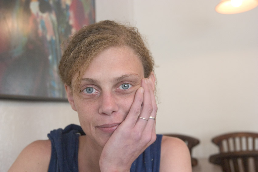 Sindsdien spreken we elkaar vaker. Ik heb schilderijen van haar, werken van jaren geleden. Haar werk staat op een stuk golfkarton, op een houten luik van een schip gesloopt, op hardboard dwars over de lijst heen, op transparant stralende vellen. Verlaten stationshallen in het duister, sterke vrouwengezichten die bijna achteloos zijn geschapen, naakten, tegelijk sterk en hulpeloos. Als we elkaar zien verbaas ik me altijd over haar aanwezigheid. Of ze nu moe is of energiek, ziek of verliefd, ze zegt waar het op staat, leest je gedachten en met haar wrange glimlach maakt ze milde grappen. |